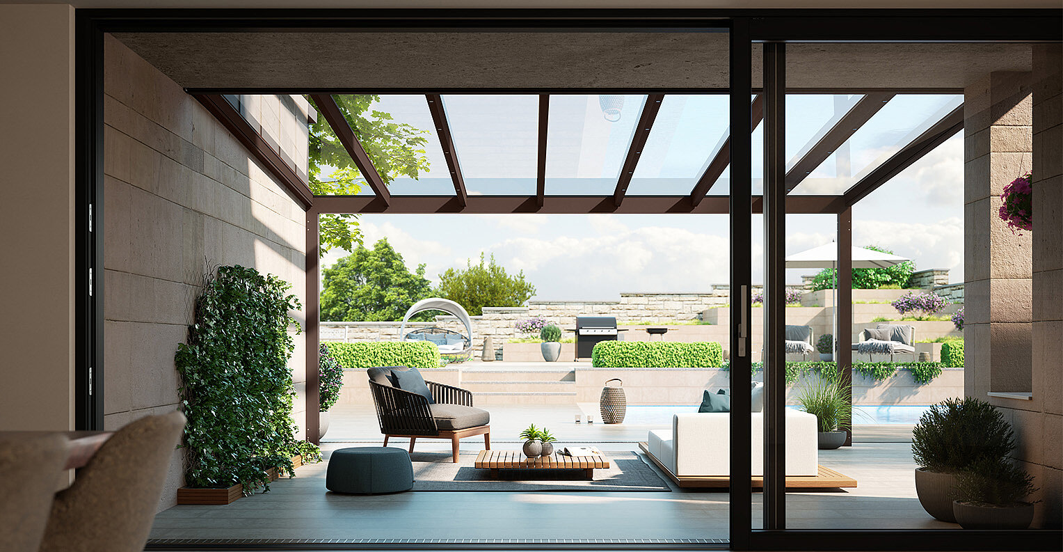 Als Maßanfertigung fügt sich das System harmonisch in unterschiedliche architektonische Konzepte ein und erweitert den Wohnraum funktional nach außen.