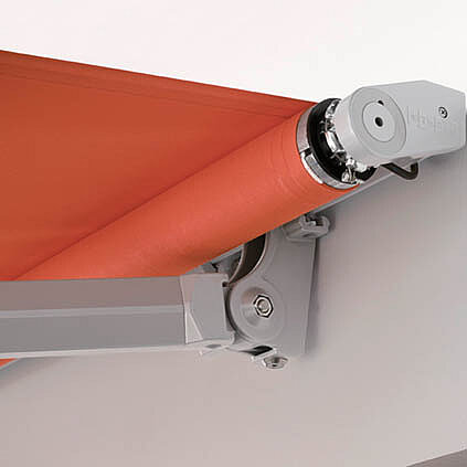 Die SELECT-PLUS setzt auf eine spezielle Konstruktion mit überkreuzten Gelenkarmen. Dadurch wird mehr Ausladung als Breite bei gleichzeitig geringer Bauhöhe realisiert. Diese Ausführung eignet sich ideal für Eingangsportale, schmale Dachterrassen und Fensternischen, bei denen kompakte Abmessungen und maximale Ausnutzung des verfügbaren Raums gefragt sind.