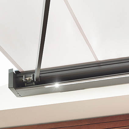 Dank variabler Konsolenposition lässt sich die CAMABOX – abhängig von der Ausführung – flexibel montieren, etwa an Wand, Decke oder Dachsparren. Der Neigungswinkel ist stufenlos einstellbar. Für zusätzlichen Komfort stehen – modellabhängig – Erweiterungen wie ein motorisierter Absenkvolant als Schutz vor tief stehender Sonne sowie eine integrierbare LED-Beleuchtung im Kasten oder Ausfallprofil zur Verfügung.