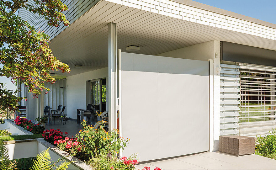KLAIBER Seitenbeschattungen schaffen geschützte Bereiche auf Terrassen und Balkonen. Die Produkte bieten zuverlässigen seitlichen Sicht- und Windschutz und sorgen für klar definierte Außenräume. Hochwertige Materialien, eine robuste Konstruktion und das moderne Design ermöglichen eine langlebige Lösung, die sich harmonisch in jede Architektur einfügt.