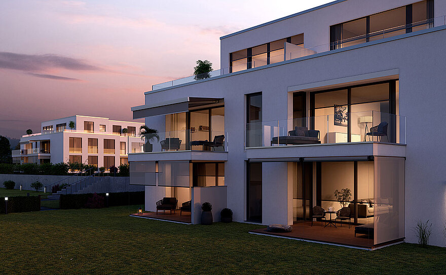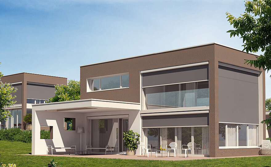 Effektiver Sicht-, Blend- und Sonnenschutz für Fenster, Balkone und Terrassen. Zuverlässiger Schutz vor Hitze und UV-Strahlen. Senkrechtbeschattungen lassen sich formschön in jede Fassade integrieren.