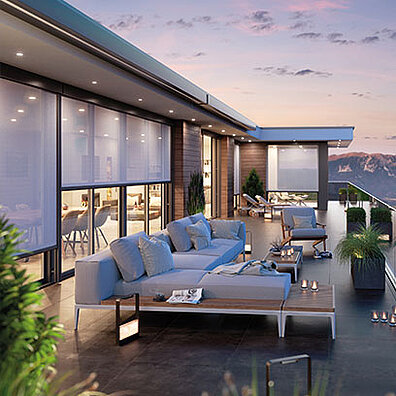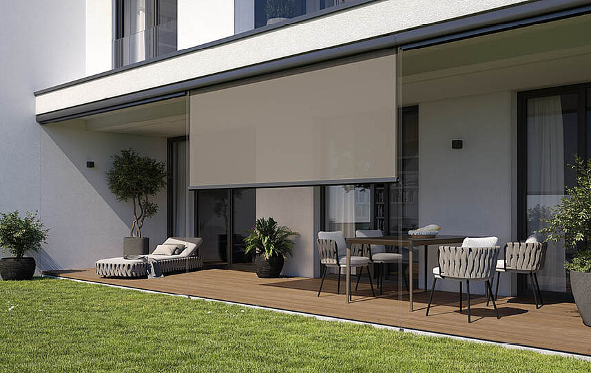 SURAVA-HIDE wurde für den nahezu unsichtbaren Einbau konzipiert. In Nischen mit integrierter Blende fügt sich die Senkrechtbeschattung harmonisch in das Architekturkonzept ein. Auch diese Variante ist mit unterschiedlichen Führungen – inklusive ZIP-Technik – erhältlich und bietet je nach Ausführung Insektenschutz sowie Verdunklung bei maximaler gestalterischer Zurückhaltung.