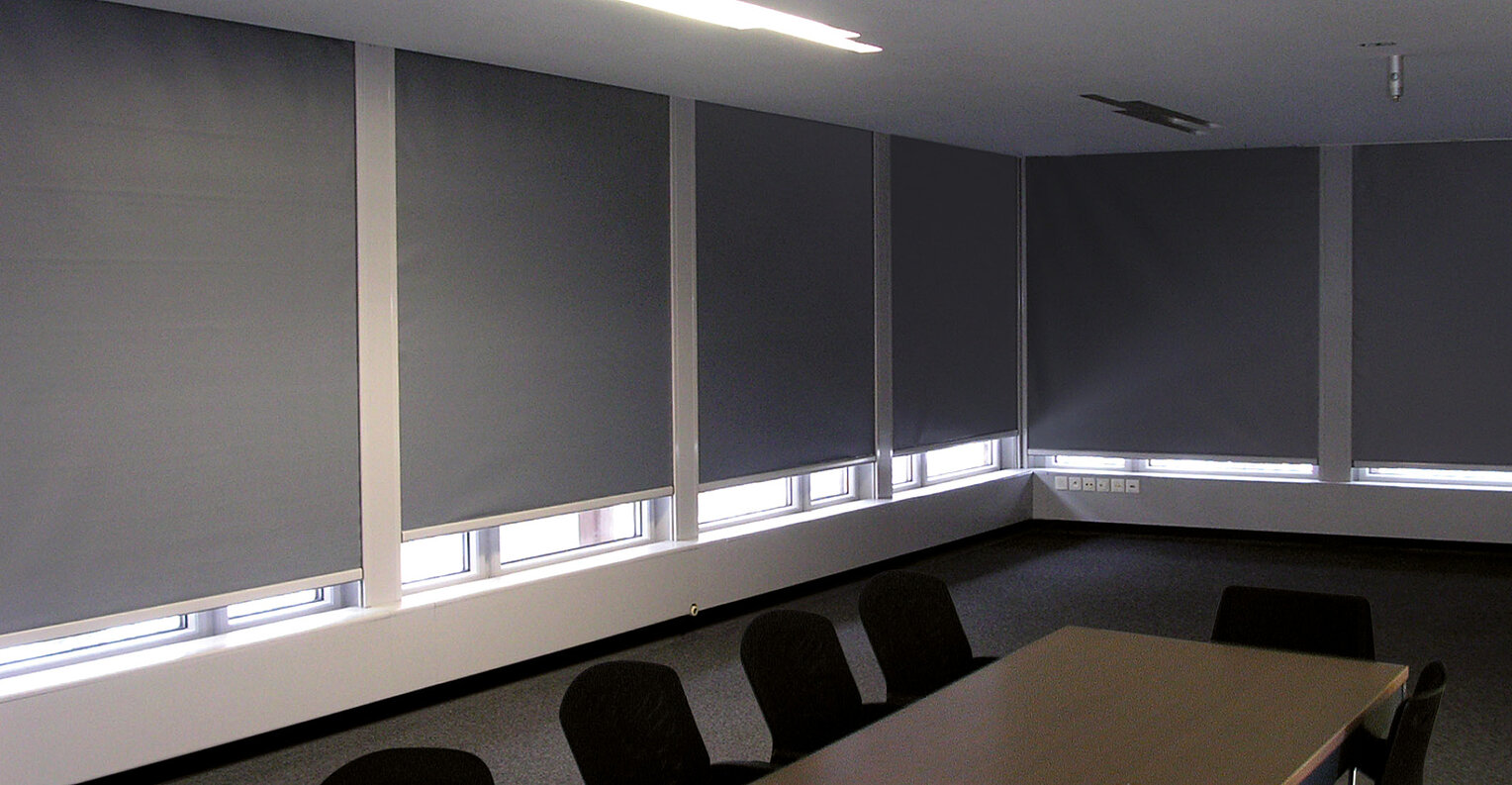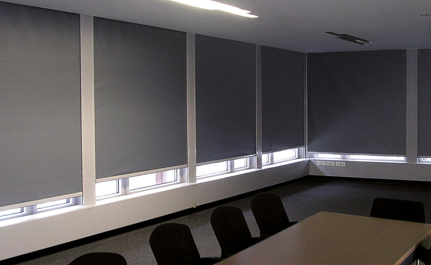 Komplett lichtundurchlässige Verdunklungsanlagen nach Maß. Für Arbeits- und Lernumgebungen, in denen maximale Abdunklung, zuverlässiger Sonnenschutz und ein kontrolliertes Raumklima entscheidend sind.