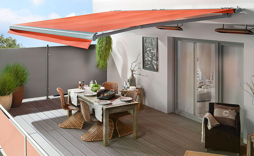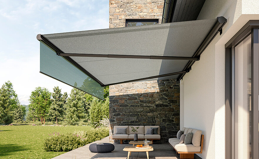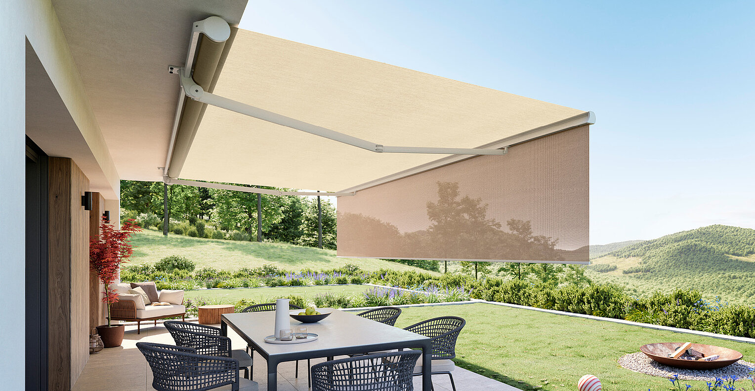 Offene und halboffene Markisen für Terrassen, Balkone und Gartensitzplätze. Maßgefertigte KLAIBER Lösungen verbinden durchdachte Technik, flexible Ausstattung und zuverlässigen Sonnenschutz.