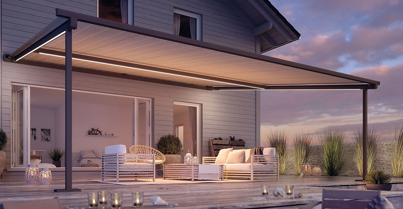 Pergolamarkisen von KLAIBER verbinden die Leichtigkeit einer Markise mit der Stabilität eines Pergolavorbaus und bieten robusten Sonnen- und Wetterschutz. Ideal für Terrassen, Gastronomie und Hotels bis 42 m².