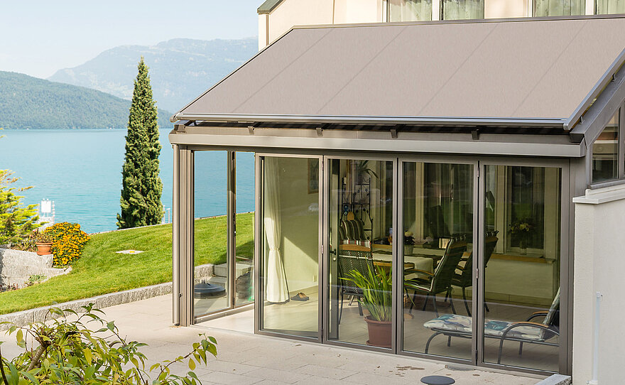 Ob Wintergarten, Glasdach oder komplexe Dachform: KLAIBER bietet textile Beschattungssysteme für alle Konstruktionen – außen oder innen montiert. Die patentierte Technik sorgt für optimale Tuchspannung, jede Anlage wird nach Maß gefertigt und lässt sich durch smarte Steuerung, Tuchwahl und Montage flexibel anpassen.