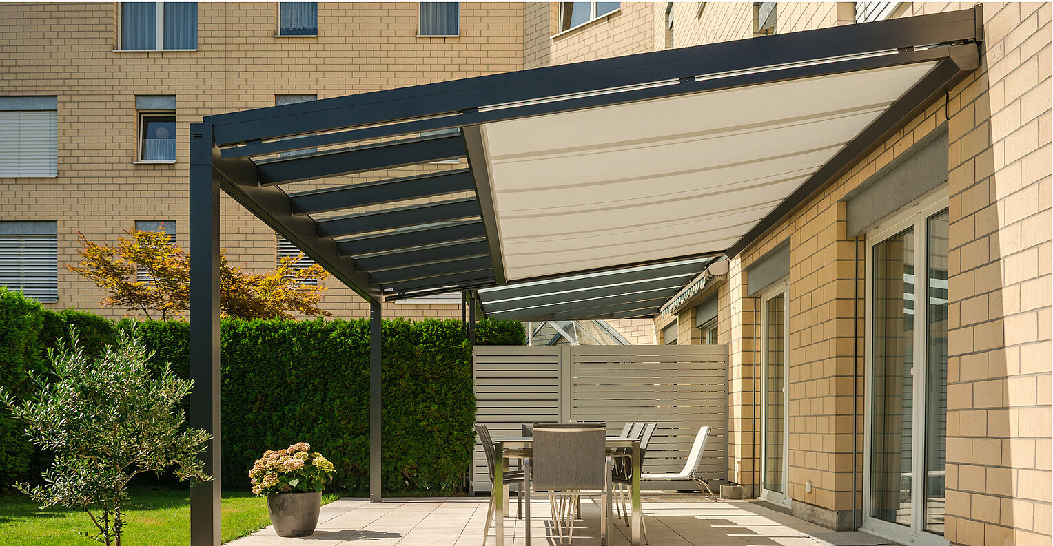Die Modellreihe ARNEX ist als Unterglas- oder Überglasmarkise die intelligente Lösung für Glasdächer und Wintergärten. Ein integriertes ZIP-System mit Gegenzug sorgt für eine dauerhaft optimale Tuchspannung – ganz ohne zusätzliche Unterstützung. Ergänzend stellt die Gasdrucktechnologie auch bei geringer Dachneigung ein gleichmäßiges, straffes Tuchbild sicher.