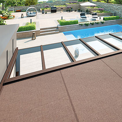 Als Unterglasmarkise wird die ARNEX außenbündig oder eingerückt montiert und eignet sich ideal für rundum oder teilverglaste Dächer. Das Tuch liegt geschützt unter dem Glas und ist zuverlässig vor Regen und Schnee bewahrt. In der Überglasvariante bleibt die Optik des Glasdachs vollständig erhalten.